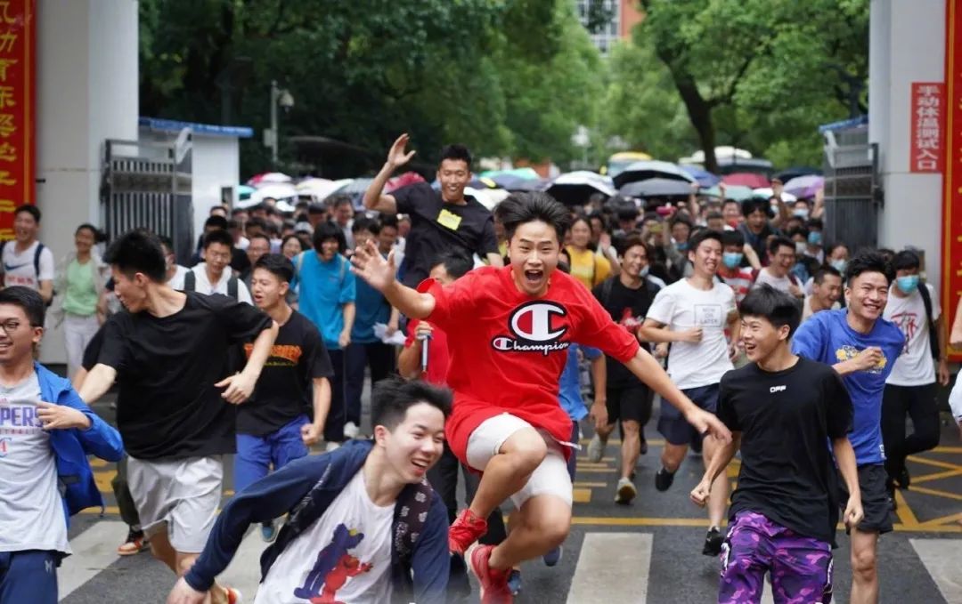 十七八歲的年輕人們,結束了高考最後一門科目,奔湧而出,原地起跳,臉上帶着只屬於這個瞬間的喜悦、自信和激動。