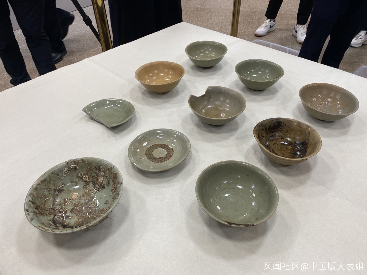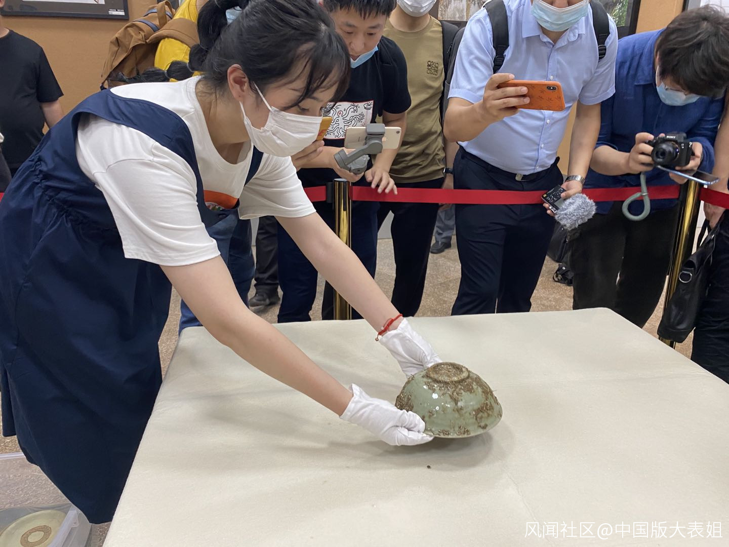工作人員小心翼翼向媒體記者展示涉案海撈瓷器。