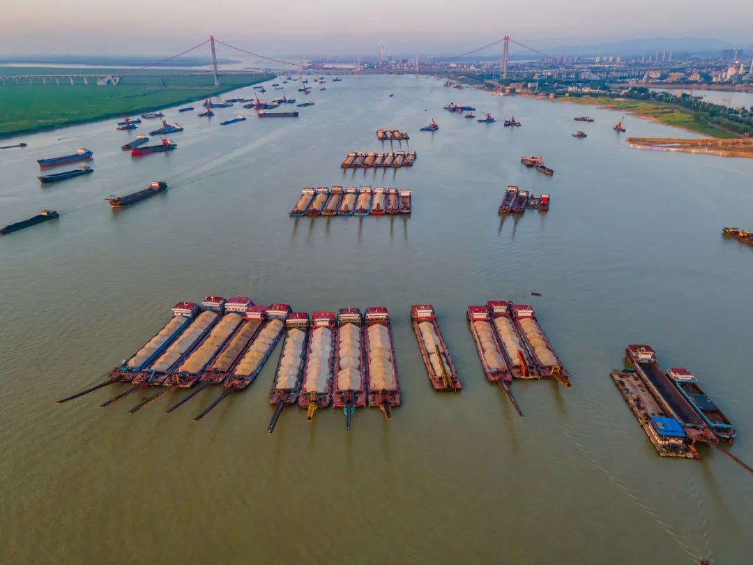 圖片|湖南嶽陽城陵磯港口,長江和洞庭湖的交匯處。2020年汛期,洞庭湖與長江水位均大量上漲,原來江湖中間的分割地帶被淹沒 · 圖蟲創意 ©