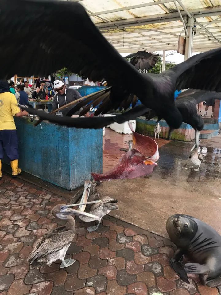 而遠為有趣地則是魚市裏野生海豹、海獅、鷓鴣和軍艦鳥們的鬥智鬥勇: