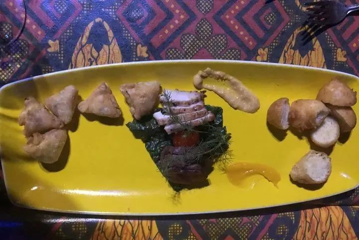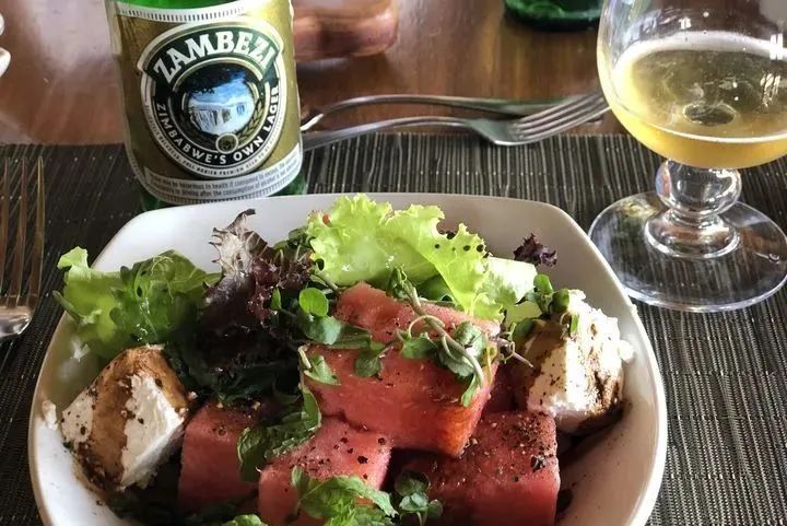 還是津巴布韋,西瓜和奶酪澆上油醋的沙拉,裏面還有蟲卵。。: