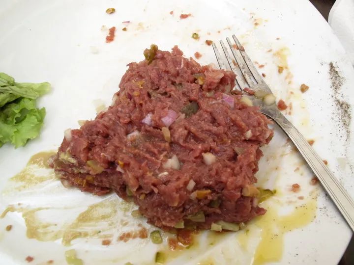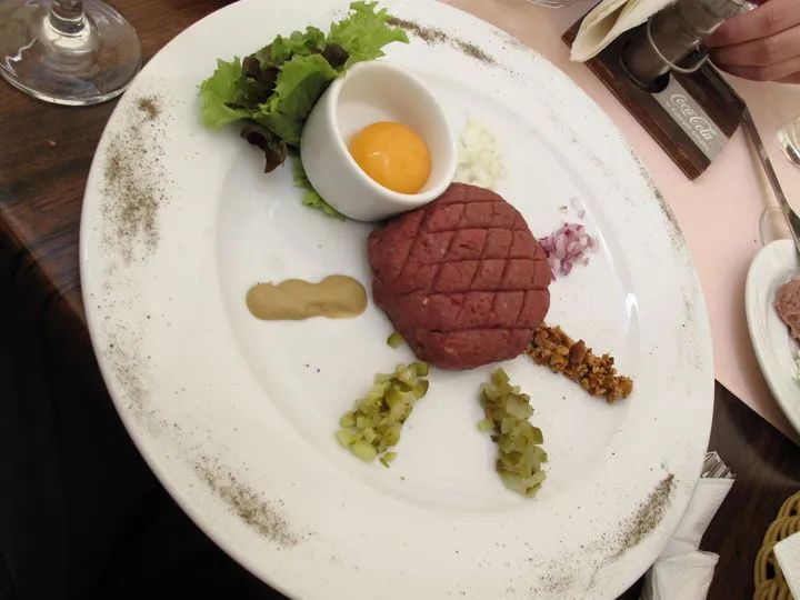 波蘭的tartar,雖然現在國內已經流行起來改良版,但這原版一拌起來,完全就是生餃子餡兒(但是真是神好吃!):