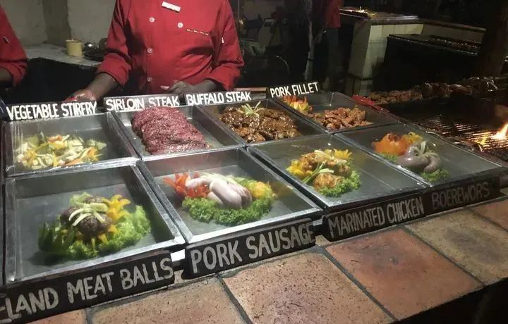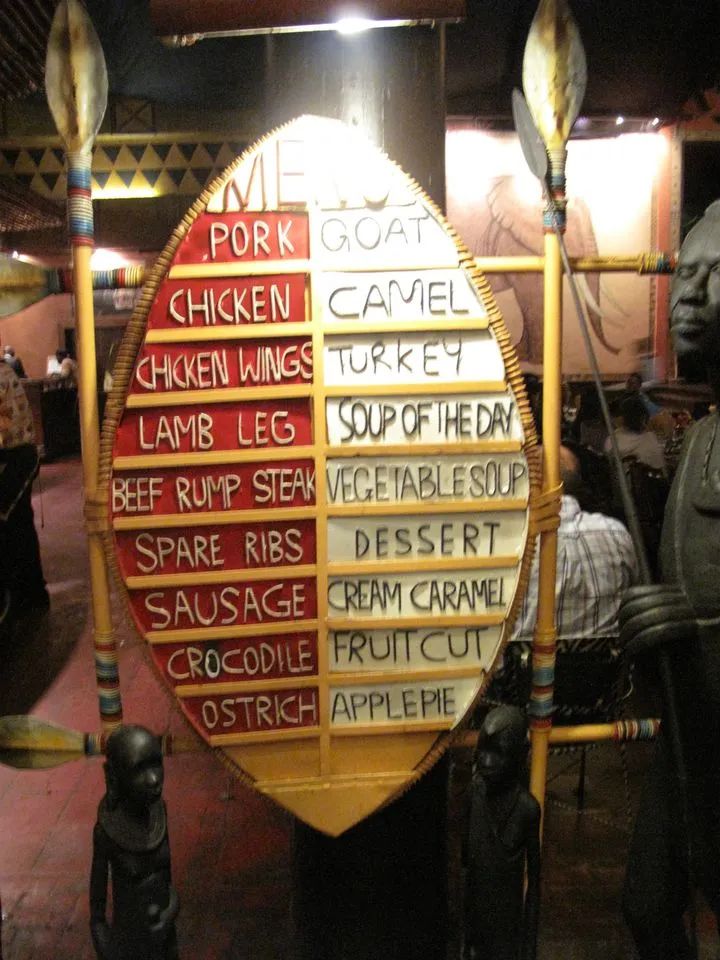 鄰國肯尼亞的燒烤可就豐盛多了,比如鴕鳥,比如鱷魚,比如山羊和駱駝: