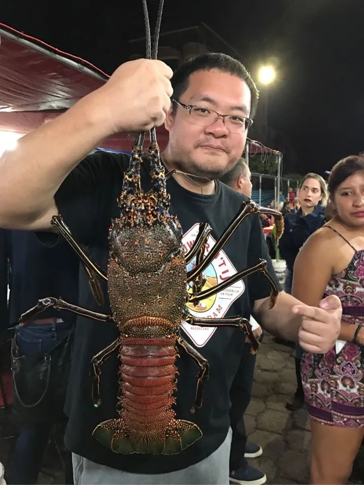 加拉帕戈斯羣島,龍蝦大到像是假的一樣,我手裏這隻才五十美元:
