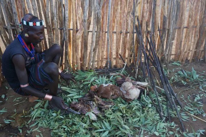 在奧姆谷地的hamer部落蹭了一頓原始晚餐,語言不通,這個糊狀物我也不知道是什麼做的: