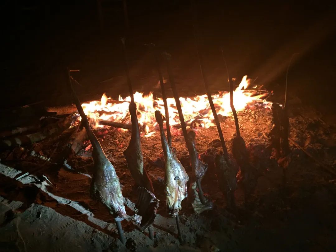 於是買了只羊回到自己帳篷,把皮剝了再烤實在好吃太多了: