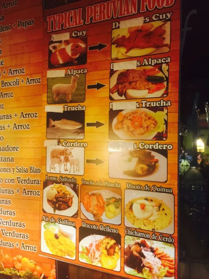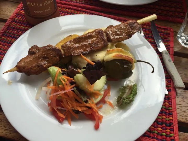 而秘魯人當地語連小飯館都是中文“吃飯”音譯的"chifa",擼串也是他們的一大愛好,只不過咱們是羊肉串,他們是羊駝(草泥馬)串: