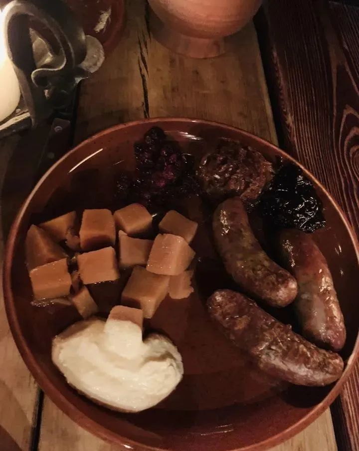 愛沙尼亞,熊肉、野豬肉、用熊肉野豬肉鹿肉一起做的獵場香腸,還有玫瑰布丁: