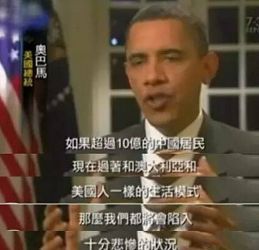 “如果超過10億的中國居民,現在過着和澳大利亞、美國人一樣的生活方式,那麼我們將會陷入十分悲慘的狀況。”