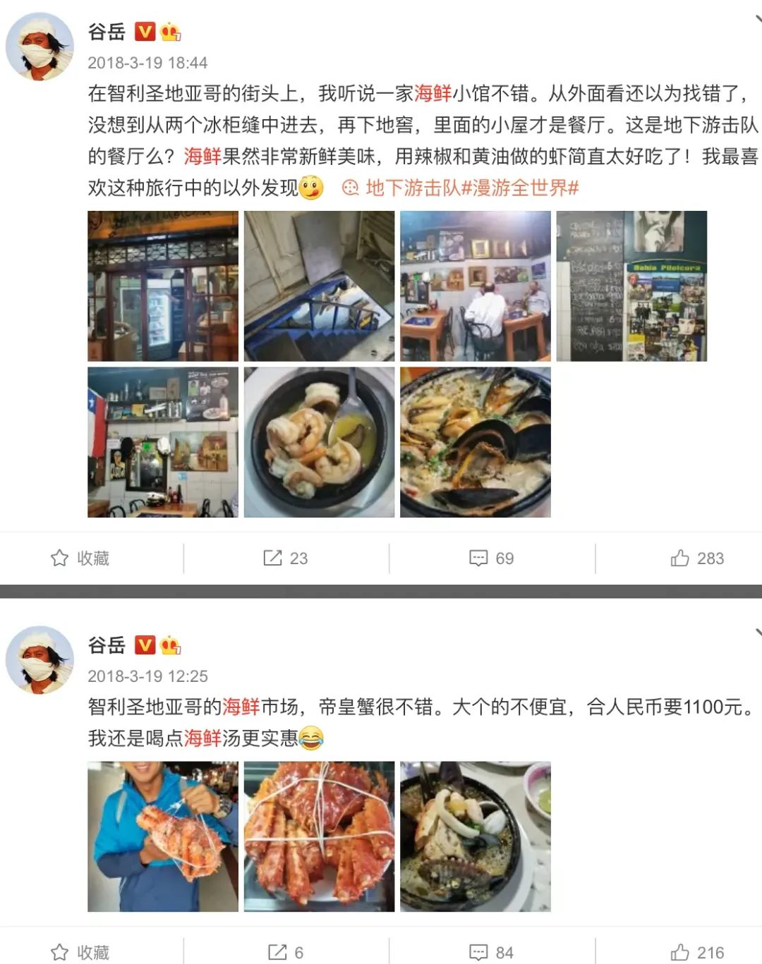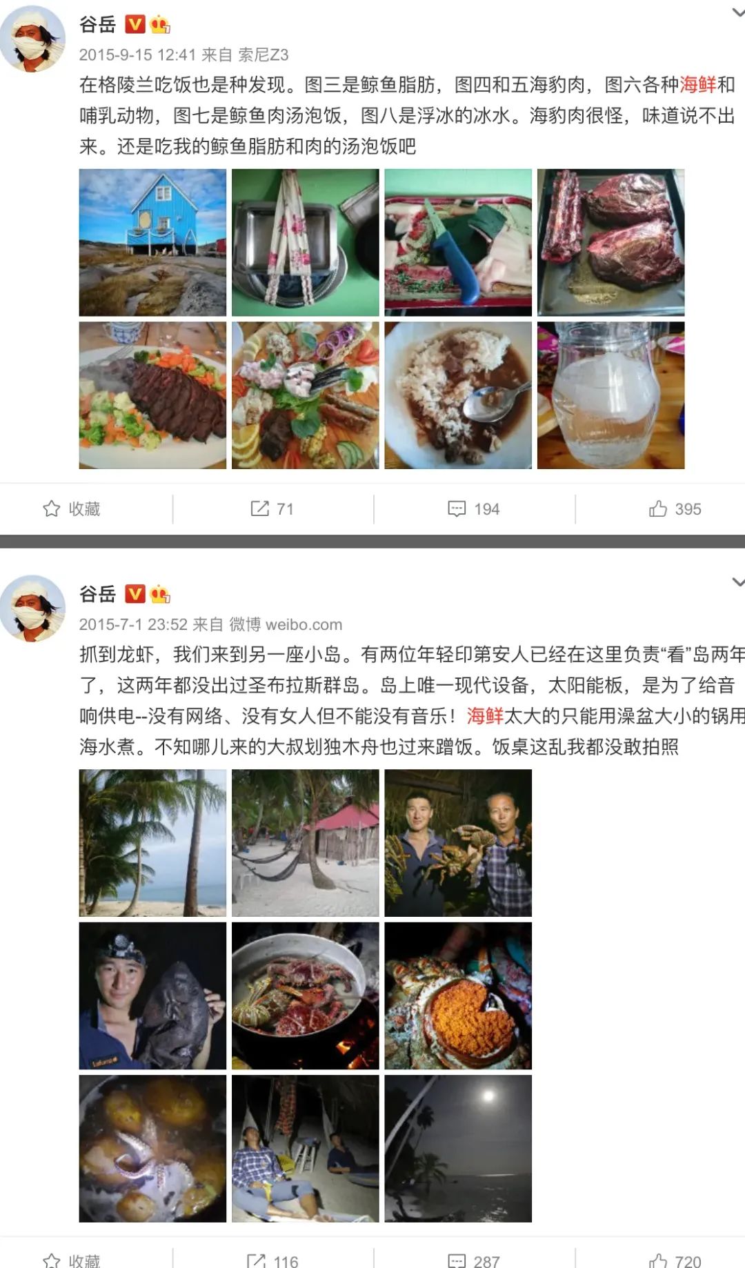 雖然谷嶽嘴上説着要讓中國人少吃海鮮,但在環遊世界的這些年裏,他****可沒少吃海鮮。