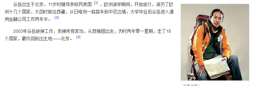 他出生在北京,11歲移民美國,1998年大學期間開始旅行。