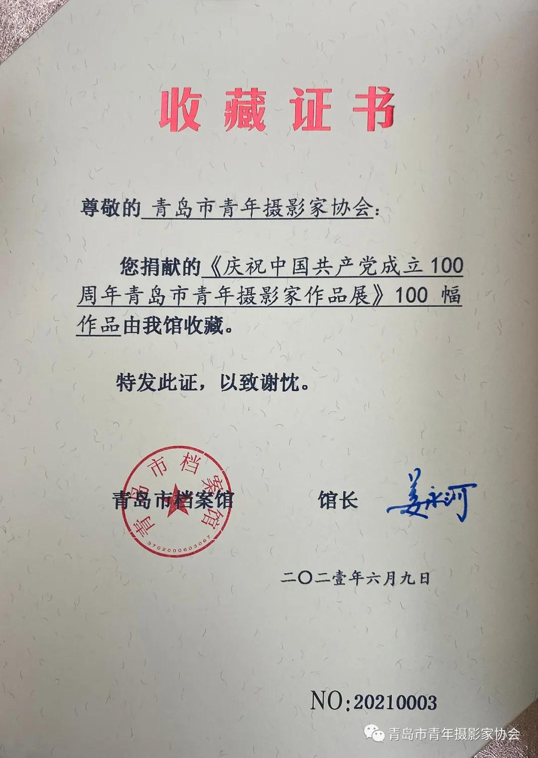 青島市青年攝影家協會向青島市檔案館捐贈了珍貴的檔案資料,學習奮鬥百年曆程,賡續紅色基因,發揮檔案獨特價值。在此前青島市青年攝影家協會組織舉辦的影展活動中,湧現出一批記錄新時代、謳歌新時代的精品力作。