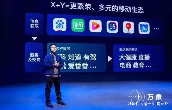 在今年的2021百度萬象大會上,百度集團執行副總裁沈抖發佈了移動生態的 X+Y 佈局和戰略,即“橫向開拓用户規模,縱向深耕行業垂類”的方式推進整個生態向服務化、人格化升級。
