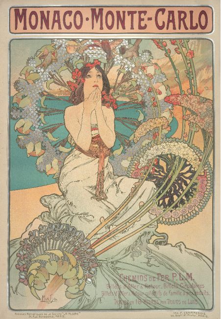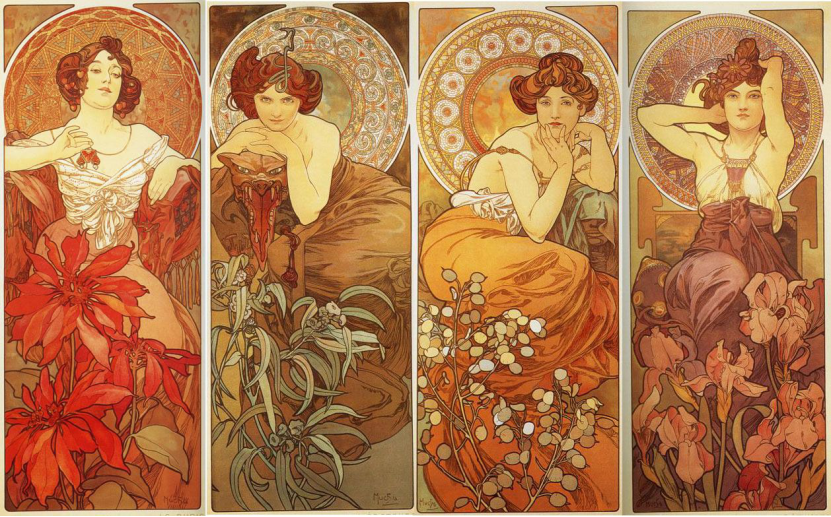 穆夏早年的經歷並不算特別順利,18歲被布拉格藝術學院拒之門外後,學業受阻的他投身於插畫、肖像、舞台設計等應用美術領域。在這些工作中的出色表現讓穆夏在二十多歲時受到了一些資助者的賞識,並有機會前往慕尼黑和巴黎進行藝術深造。也正是巴黎學藝期間,他的聲名開始隨着他精美絕倫的海報設計而鵲起。