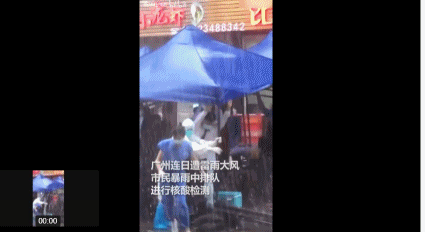 核酸檢測需求一天天加大,各種雨傘連成的長隊,成了廣州雨季一道奇觀。