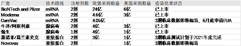 只有Morderna及強生獲得了FDA批准。牛津/阿斯利康、Novovax、默沙東以及葛蘭素史克(GSK)和賽諾菲聯合研發的疫苗尚未得到FDA 緊急使用授權。