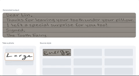只需輸入一段文本內容,加上你的筆跡,1個單詞即可,它就能生成“手寫版”。