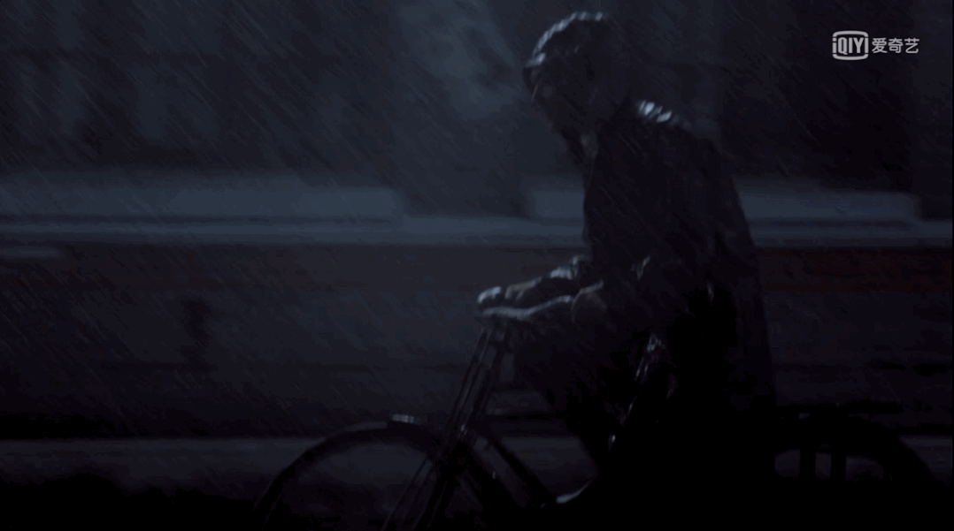 與此同時,一個人接到電話,騎上自行車,罩上雨衣,在雨夜裏狂奔。