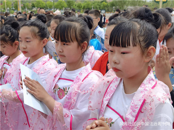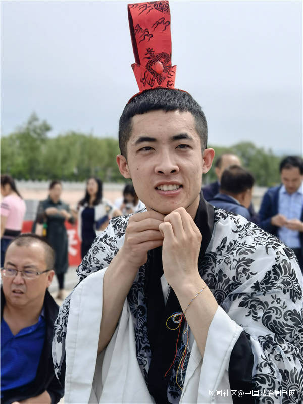 在主持人的引導下,學生老師和來賓身穿漢服,司儀、獻官、贊者、執事等各司其職以華夏民族三獻禮祭祀楚三閭大夫屈原,全體觀眾對着屈原像進行了莊嚴的三鞠躬儀式,表達對這位先賢的敬仰之情和深沉的認同之意。