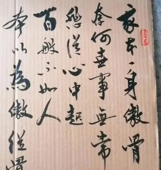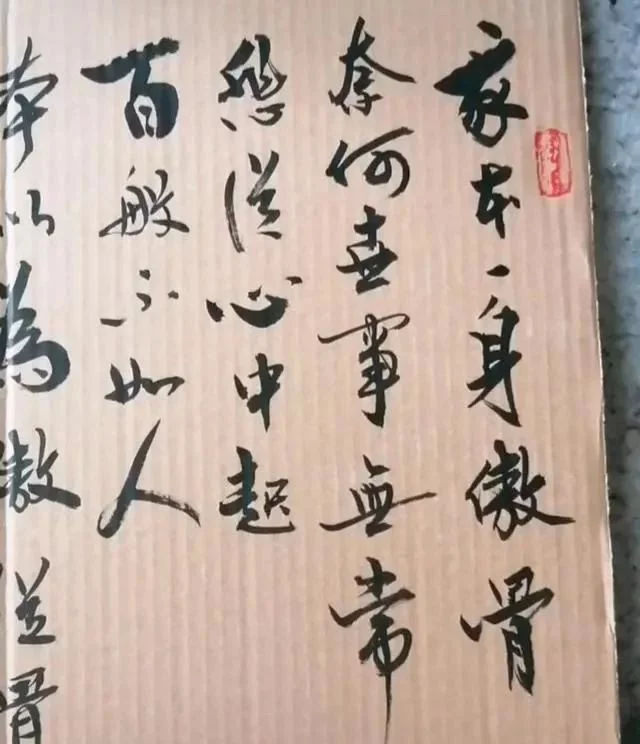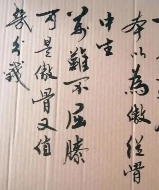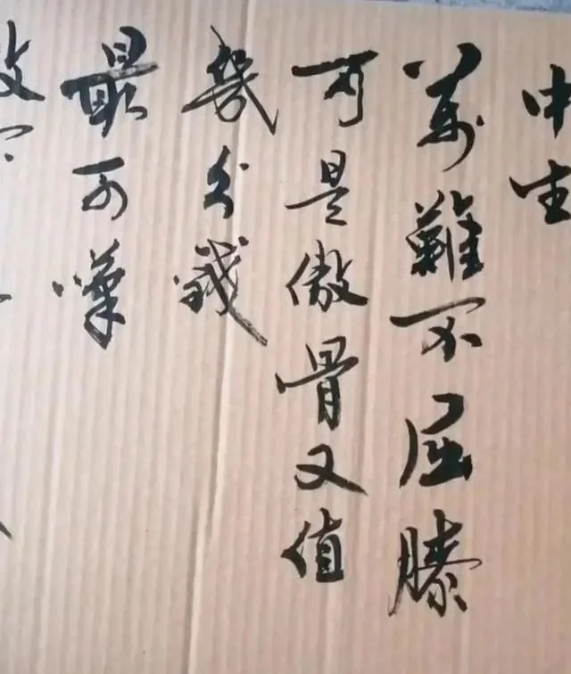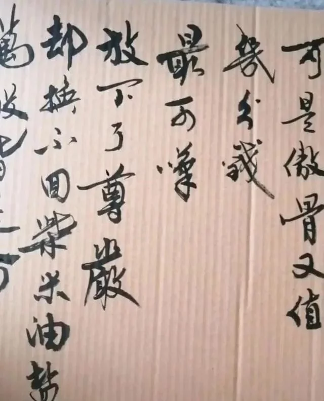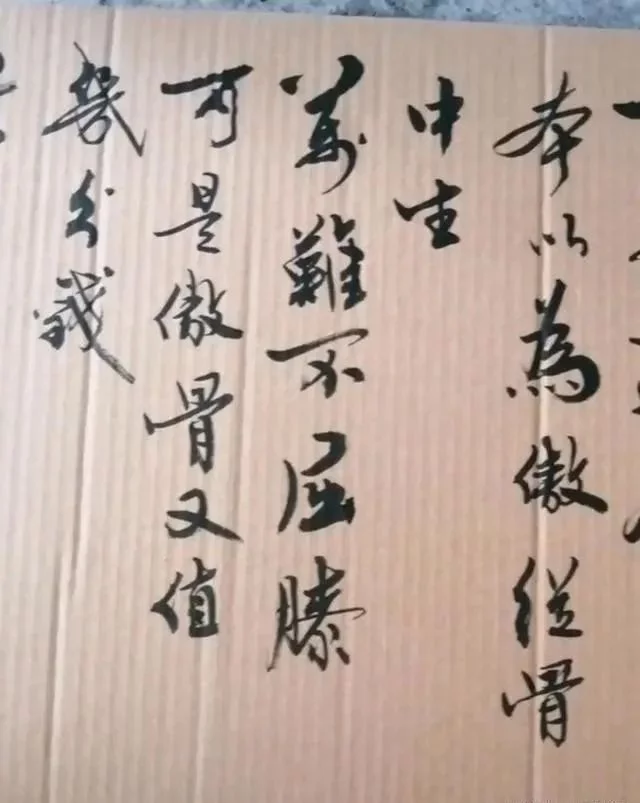 高手在紙殼子上練書法,字跡有“王”韻,兼具“宋”意,融古出新