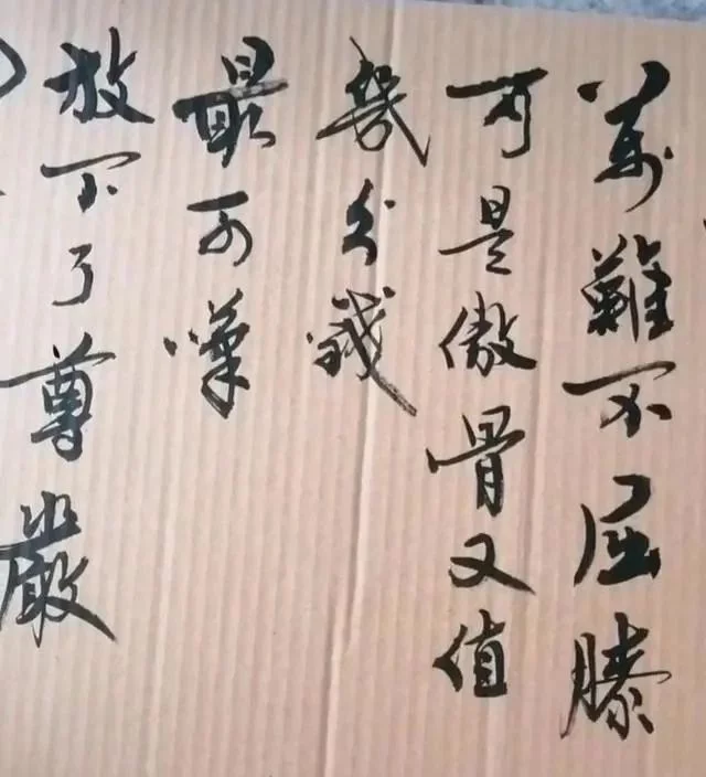 看到這樣的字跡,讓我們感受最為深刻的就是”高手在民間“、”大隱隱於市“,他們的出現,不僅讓我們的生活變得更加美好,讓人們處處都能夠看到美好的東西,而且還能夠將廢物進行有效地利用,諸如這位高手,廢舊紙殼子在我們生活中也是常見的物品,可是在這位高手的筆下,卻變成了藝術品,很多網友看到都興奮地説道”收藏了“,可見美好的東西對人們的影響是非常深遠的。