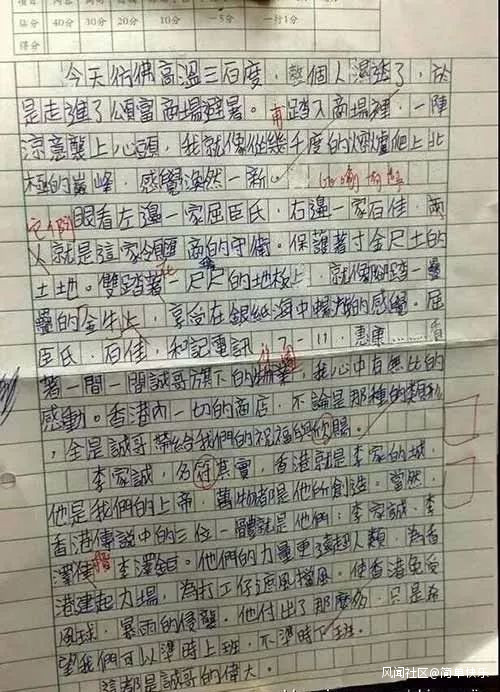 一名香港小學生曾寫過一篇作文《李家的城》: