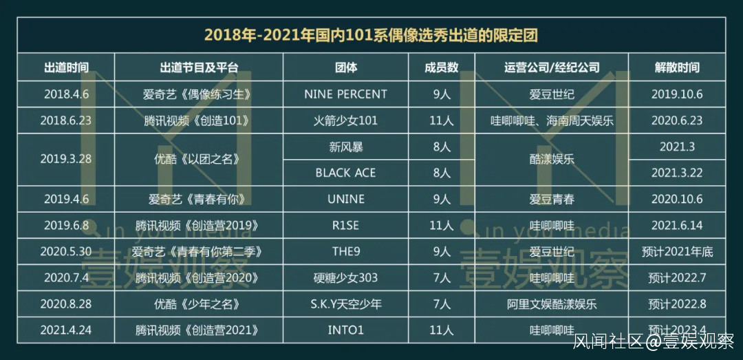 這些問題都切實地反映在目前還未解散的限定團上,他們的團隊出道或多或少面臨着節目不火、成員爭議等問題。