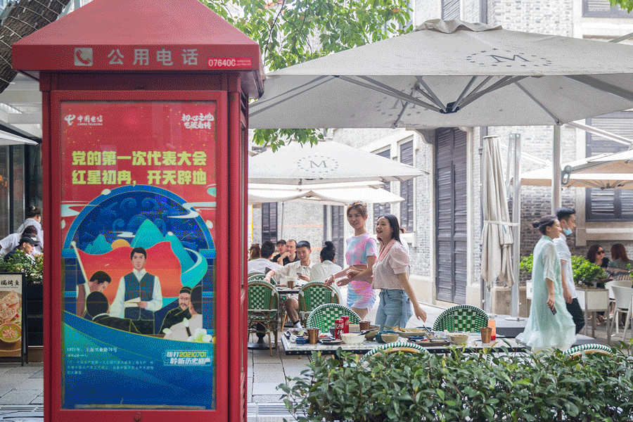 據上海電信介紹,近日來,前來打卡的市民和遊客很多,特別是靠近新天地一大會址附近的公話亭更受歡迎,一些市民還帶着全家老小一起拍照留念。