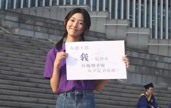 一枚漂亮小姑娘,手舉標語:你想不想讓我成為你的青春?