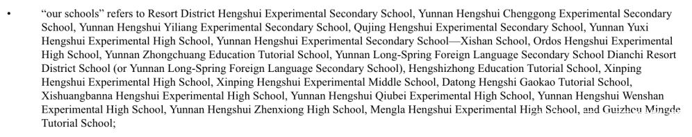 與衡水中學合作辦學的機構中,不乏上市公司。今年3月12日,第一高中教育在紐交所上市。截至2020年12月31日,其共擁有19所學校。其中15家掛名“衡水”字樣,它們以河北衡水中學的名義遍佈雲南、內蒙古多個市區,甚至深入縣城。