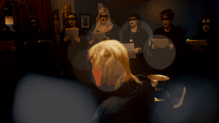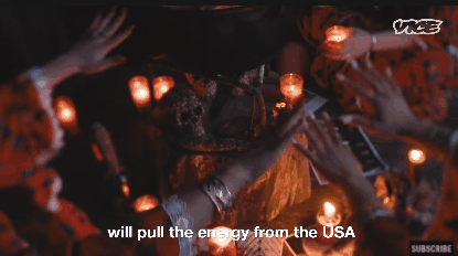 在一個神秘的地下室裏,有一羣巫師蒙上眼罩點上蠟燭,對着川普的雕像唸叨了整整一晚上,“ 祝福 ”他早日退休,安享晚年。