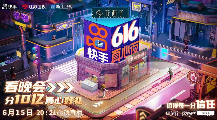 6月15日20點21分,“快手616真心夜”晚會,將於快手App、快手極速版App、江蘇衞視和浙江衞視同時進行直播。