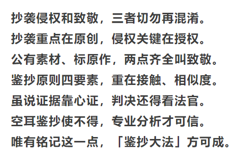 在「鑑抄」的過程中,有一點需要提前聲明:抄襲和侵權有很大的區別。