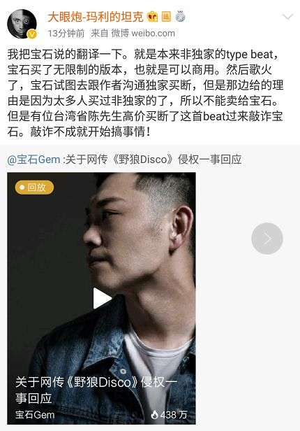 比如之前的野狼disco事件,beat確實不是由寶石老舅創作的,其伴奏的作者是個芬蘭人名叫ihaksi,他在2018年2月將這首伴奏上傳到了網絡平台。