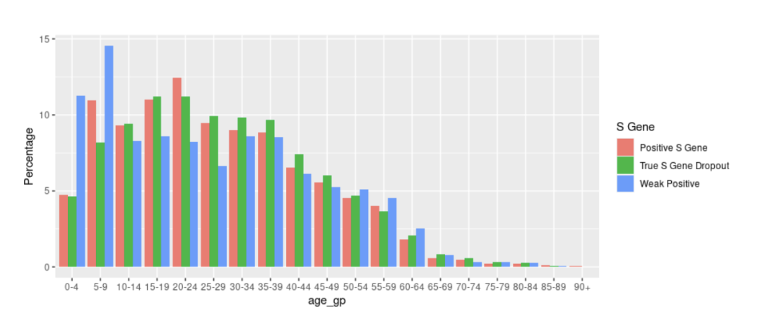 蘇格蘭公共衞生機構研究蘇格蘭地區的COVID-19 監測平台EAVE II從 2021 年 4 月 1 日到 2021 年 5 月 28 日的測序數據進行隊列分析發現,97% 的 S 基因在蘇格蘭測序的陽性病例是 Delta 變體,並且 99% 的 Delta 變體是 S 基因陽性。並發現AZ 新冠疫苗似乎不如輝瑞新冠疫苗有效,與 alpha (B.1.1.7) 變體相比,住院人數翻了一番。