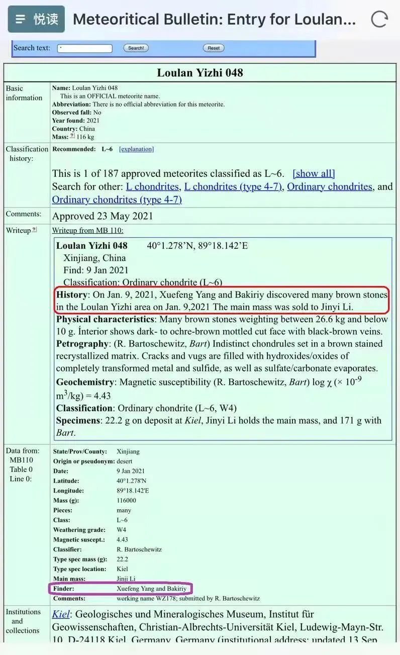 “星光不負趕路人”或許正是對這次嘗試的最好註解,在第25天,他找到了第一塊兒隕石——一塊兒L型石隕石,五天後,他又尋獲了第二塊兒。
