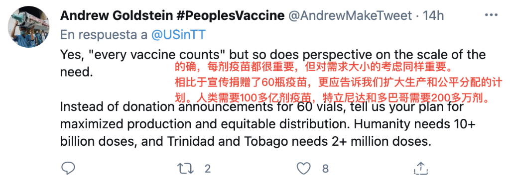 憤怒之餘,也有一些網民將矛頭對準美國“疫苗民族主義”、全球疫苗分配不公等深層次問題。