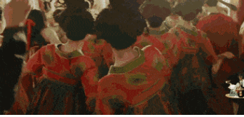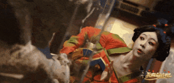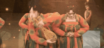 舞台,在她們的舞動下變化,仕女畫幻變出山水,山水又漸變至金碧華宮。
