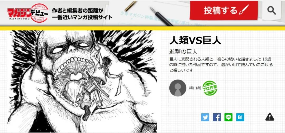 譯者注:《進擊的巨人》原型單篇漫畫《人類VS巨人》,諫山創19歲時創作