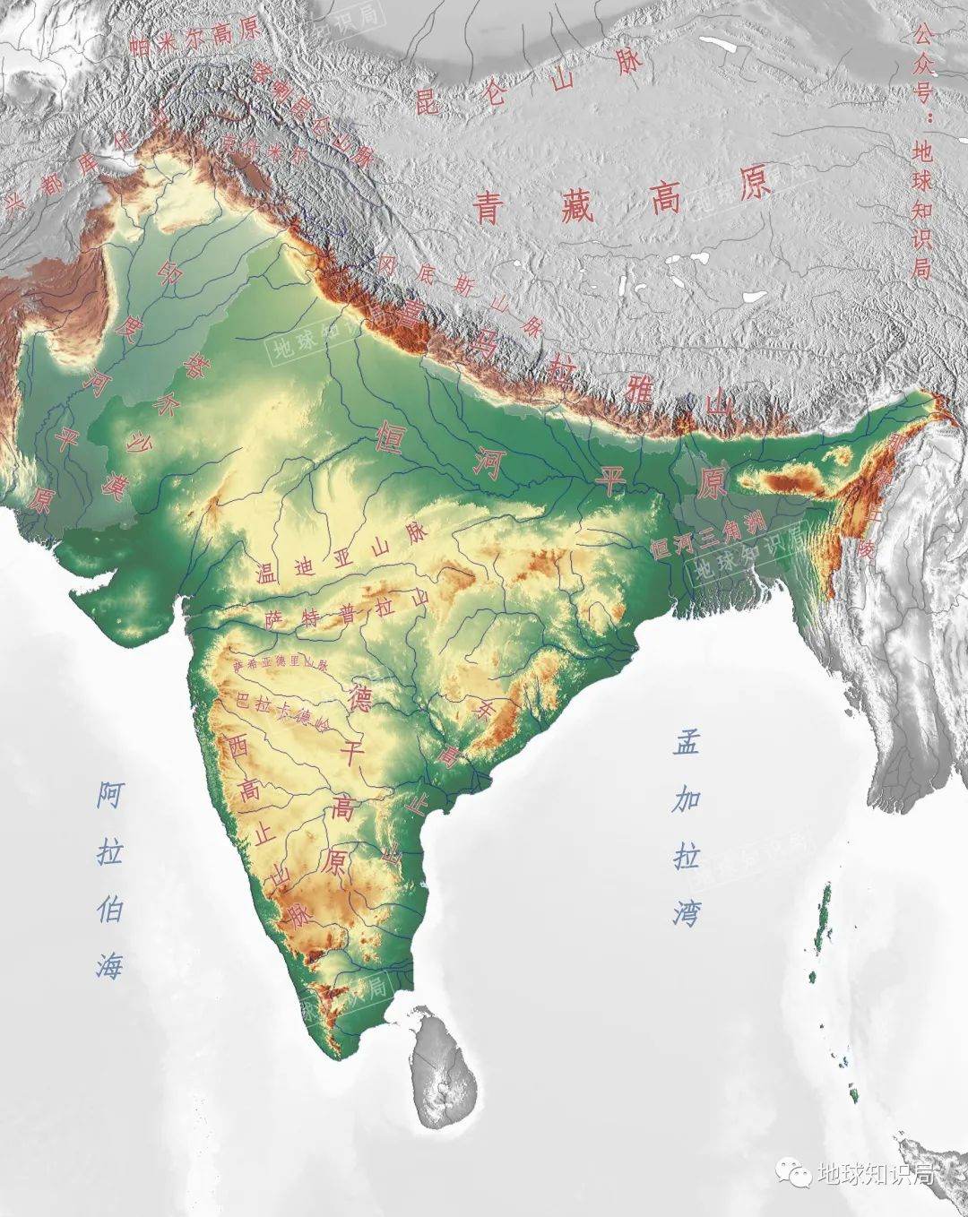 南亞次大陸在地理上相對封閉,這是由於印度洋板塊與歐亞大陸板塊所碰撞產生的喜馬拉雅山脈造成的。除喜馬拉雅山外,從西至東的興都庫什山、那加丘陵都是板塊碰撞的副產品,這些山脈成為這裏與外部的天然地理邊界,拱衞了地勢較為低平的南亞次大陸。