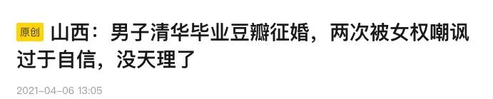 今年4月份的時候,山西有個畢業於清華大學的男生在豆瓣徵婚,有必要説明一點的是,他在帖子中沒有表達任何對於女性不友好的觀點。