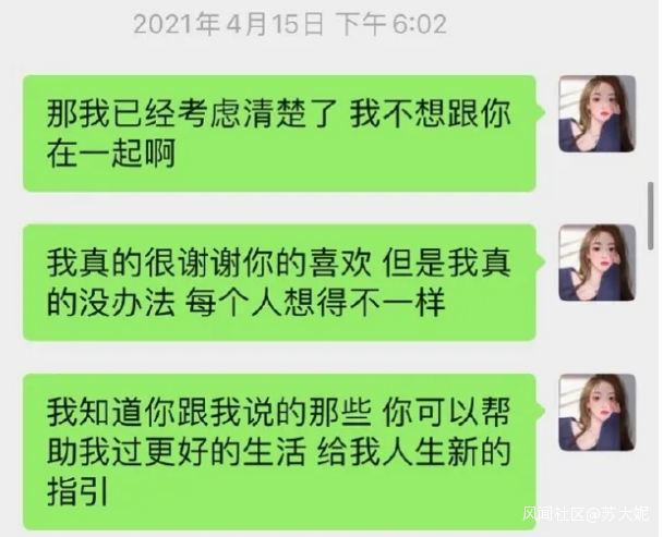 中期在聊天的時候明確表示不接受不回覆消息,所以給出承諾之後不會不回覆。在對方某次單方面想要見面的時候,也就是王校長私自開車從上海到杭州想要見對方的那次,在之前明確表示當天有安排,但是對方還是來了。思來想去直接攤牌拒絕,希望之後做朋友不要再糾纏。語氣不説小心翼翼,但也還是真誠。