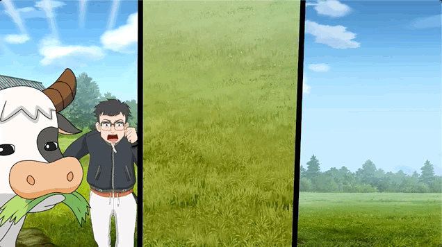 大家趕來,按着導航指示撥開草叢,卻看見兩個牛頭在一起蹭蹭,還蹭出小紅心。其他人會心一笑,思思還刺激面哥説:“面哥,你懂點牛事吧!還擠啥奶啊!”
