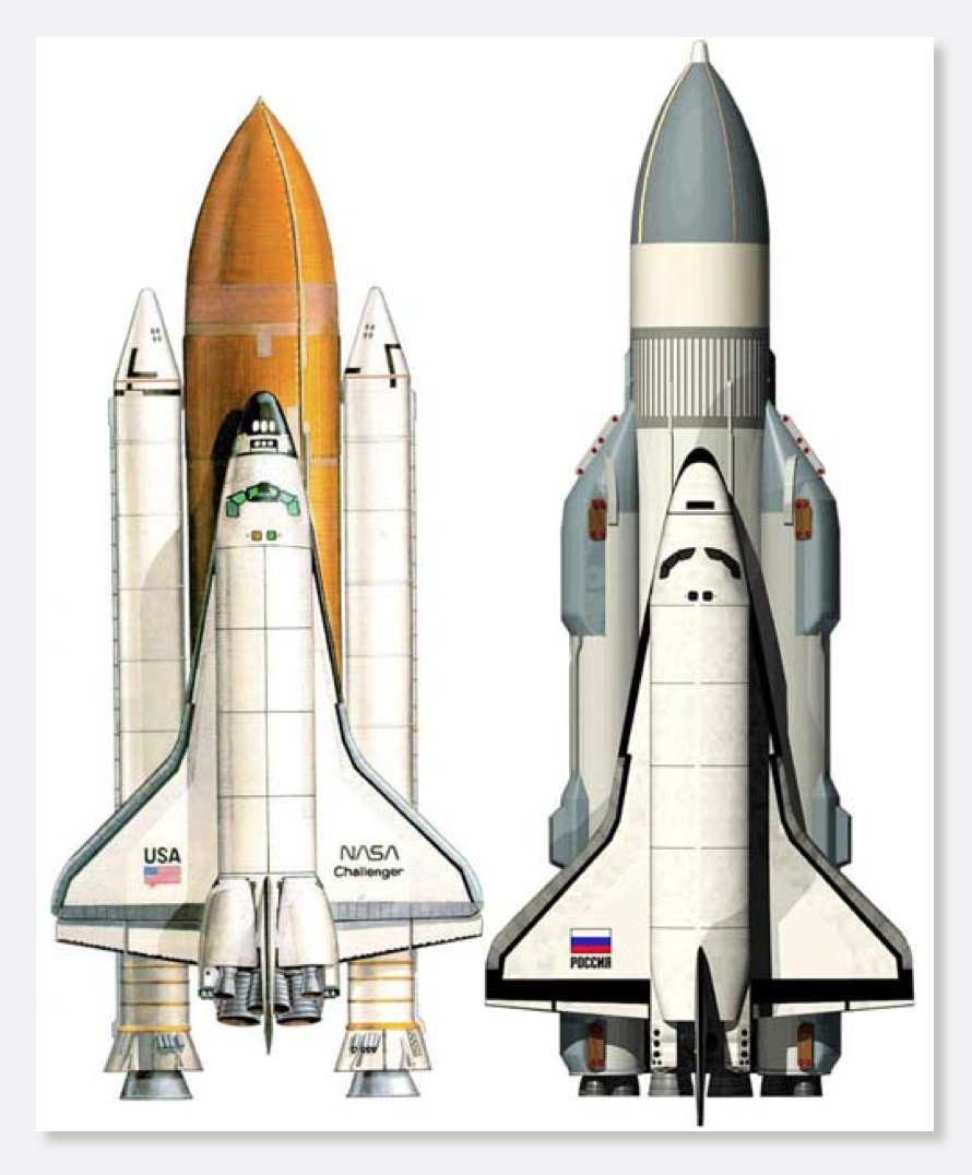 美國挑戰者號航天飛機與蘇聯暴風雪航天飛機丨來源:Alex Hollings