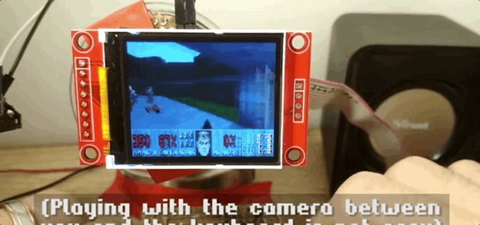 選用的160×128像素的顯示器本來需要一個20kB的緩衝區,但Nicola選擇首先計算並渲染160×96像素的3D場景,將結果發送到顯示器。然後再繪製遊戲中的狀態欄,發送剩餘的160×32像素。這樣就節省了5個寶貴的KB,卻不影響性能。
