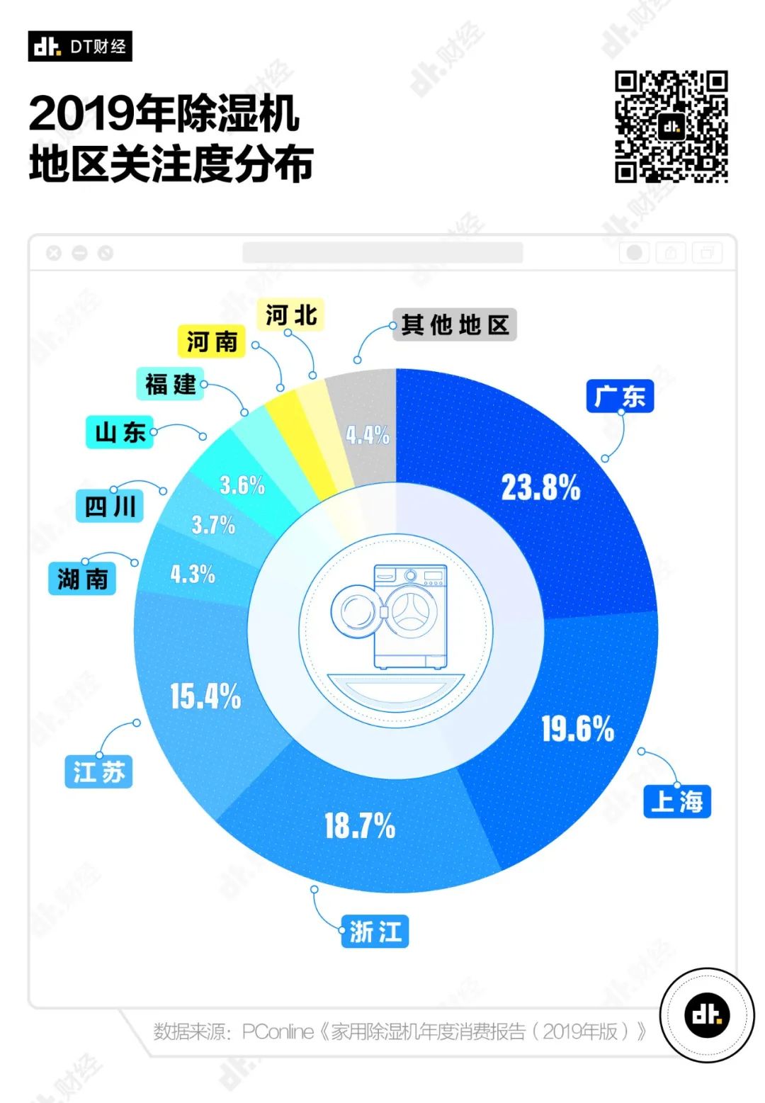 根據PConline除濕機2019年度報告,廣東對家用除濕機的關注度最高,而江浙滬地區的關注度合計佔全國各地區除濕機關注度的53.7%,超過一半。包郵區人民6、7月的命不僅僅是空調給的,還是除濕機給的。