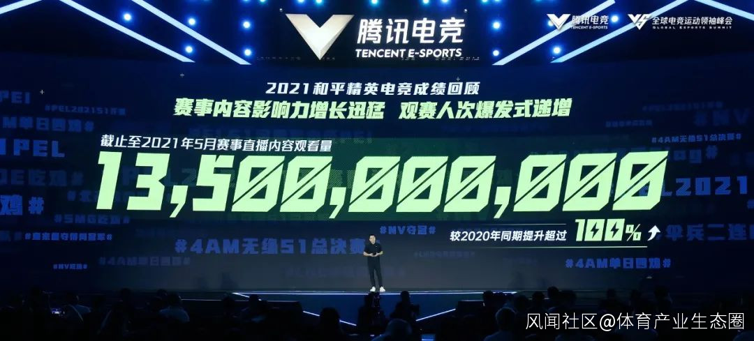 在最頭部頂流大項目的背後,也有許多電競新項目正在冉冉升起,其中《和平精英》電競一定是過去一年中進步最大的項目。根據騰訊互娛光子市場總監、PEL相關負責人廖侃在會上發佈的數據顯示,**《和平精英》賽事內容直播觀看量突破135億,較2020年同期提升超過100%,**驚人數字和巨大漲幅的背後,這一最初被外界認為「觀賞性低」、「電競化無範本」的項目正在打破偏見,向着中國電競賽事第三極進發。