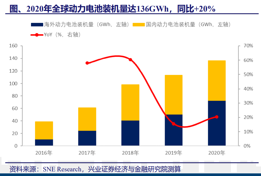 2020年,全球動力電池同比增長20%,增量主要來自歐洲。