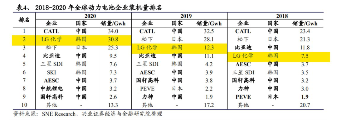 而未來隨着美國新能源車滲透率攀升,全球電池裝機量競爭格局可能再生變數,松下、LG化學、SK等動力電池企業,伴隨下游車企需求增長,自然也水漲船高,在全球市場份額中的地位得以鞏固。
