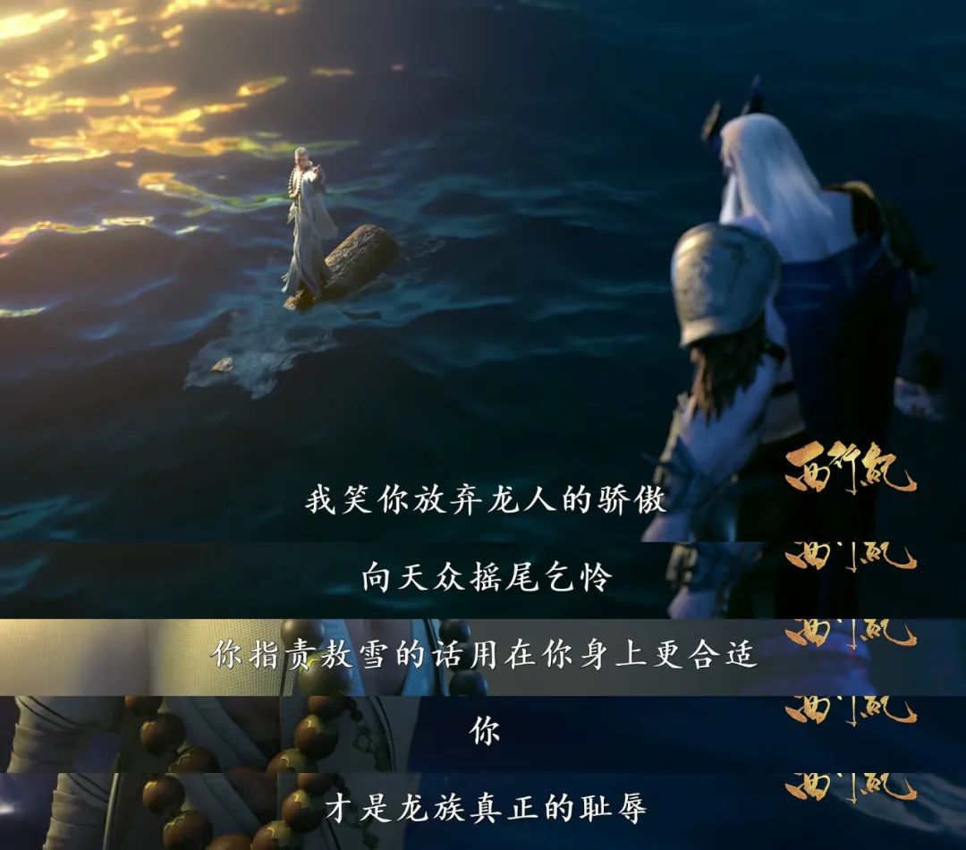 正是有了這一殘缺的底調,“西行小隊”後來的一路反擊才得以熱血無比,直擊人心。後來,唐三藏不願再做天界眼中“安分守己”的大功臣,他為自己爭取了一條悔過和重來之路;敖雪不再畏懼龍族的目光,他從“放棄自我”轉向“相信自我”;豬八戒重拾自信,再次舉起了自己的九齒釘鈀。這些角色內心信念感的釋放,比壯闊的打鬥更具衝擊力。